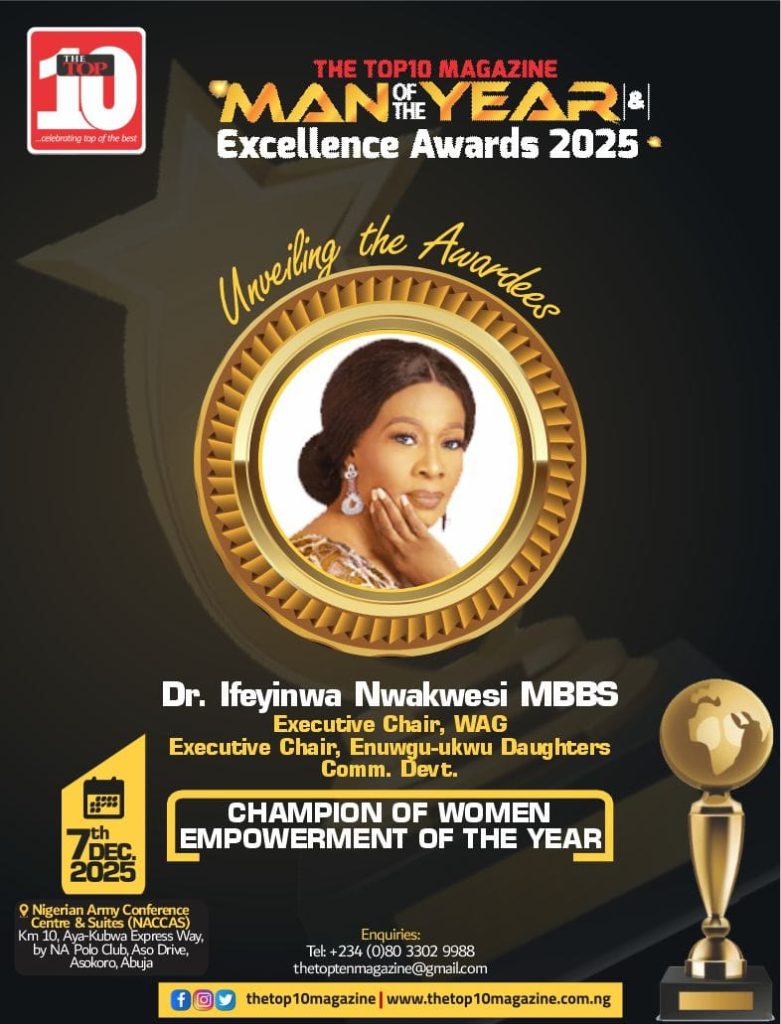 DR. IFEYINWA NWAKWESI – Top10 Magazine Champion of Women Empowerment of the year